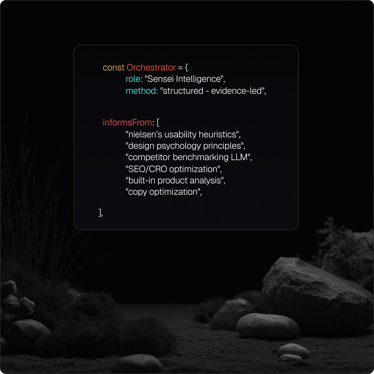 Combining design psychology, usability heuristics, SEO/CRO best practices, and a curated competitive benchmark library (LLM), Sensei helps you immediately level-up.